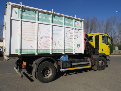 Poniżej pojazd z kontenerem na odpady niebezpieczne, który będzie do dyspozycji mieszkańców.