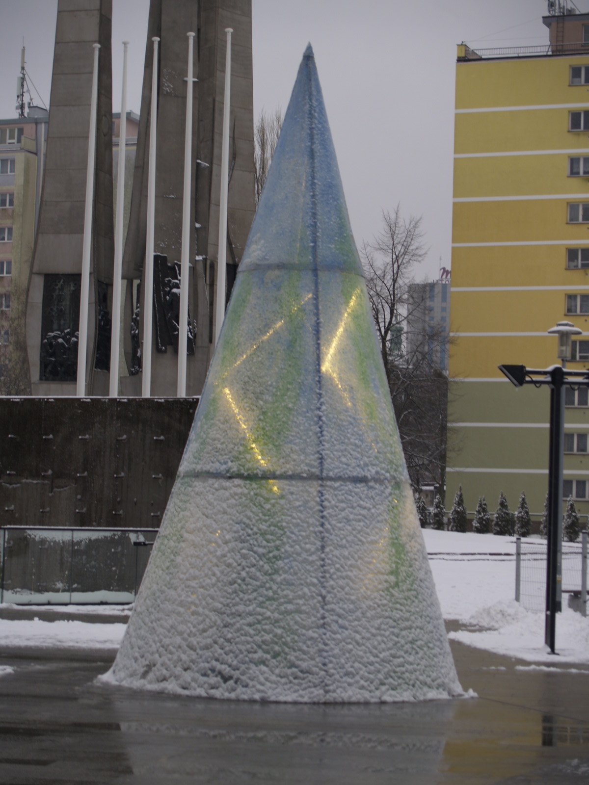 Eko Choinka to instalacja w całości wykonana z odzyskanych tworzyw sztucznych. Główna konstrukcja w kształcie stożka obklejona została płatkami PET, które powstają podczas przetwarzania plastikowych butelek. Do wykonania Eko Choinki wykorzystano łącznie 70 kilogramów tego tworzywa.