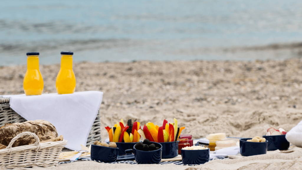W dniu wyjścia na plażę warto zadbać o posiłki. Przygotowane dania zapakuj do pojemników na żywność, które masz już w domu. Owoce można schować do bawełnianych woreczków. Weź ze sobą wielorazowe sztućce i serwetki. Zadbaj także o napoje, które możesz zabrać w butelkach termicznych, a jeżeli takiej nie posiadasz, to wykorzystaj np. szklane butelki, które możesz mieć w domu. Aby podczas plażowania nie kusiły nas słodkie napoje, warto do wody w butelce wrzucić kilka kawałków arbuza, plasterków cytryny oraz liści mięty. Jeżeli wolisz smak wytrawny możesz wrzucić plasterki ogórka i gałązki rozmarynu.