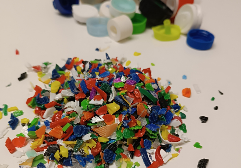 Proces recyklingu rozpoczyna rozbijanie przywiezionych bel i usunięcie spinających je drutów. Następnie doczyszcza się materiał, usuwając termokurczliwe etykiety i inne zabrudzenia. Oczyszczone odpady trafiają na tzw. młyn, gdzie są mielone, cięte i rozdzielane na pozostałości korków i tzw. płatek PET, a następnie ponownie oczyszczane.