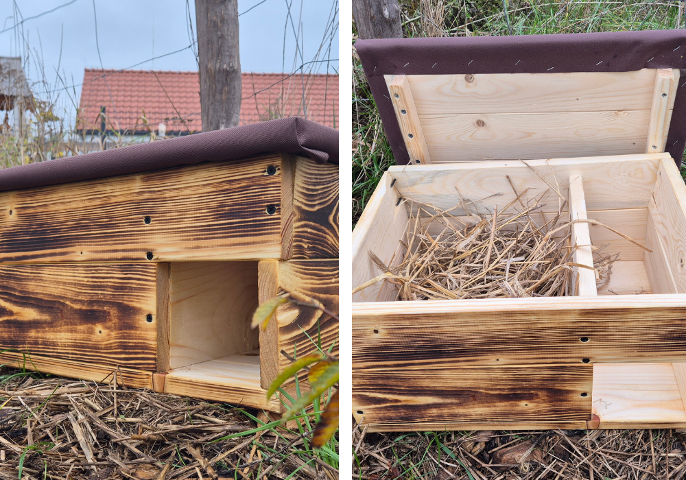 Jeśli chcemy, żeby ten sympatyczny ssak przespał mrozy w naszym ogrodzie, wystarczy stworzyć mu właściwą kryjówkę. Wystarczy zbić kilka desek, tworząc skrzynkę o wymiarach 30 na 30 centymetrów z niewielkim otworem, a najlepiej dodatkową przegrodą wewnątrz tak, by śpiący jeż nie został zaatakowany przez większe drapieżniki. Na dnie warto wysypać np. trociny dla większej wygody i izolacji legowiska oraz miseczkę z wodą. Taką jeżową chatkę można dodatkowo przysypać liśćmi lub gałęziami i czekać na lokatora.