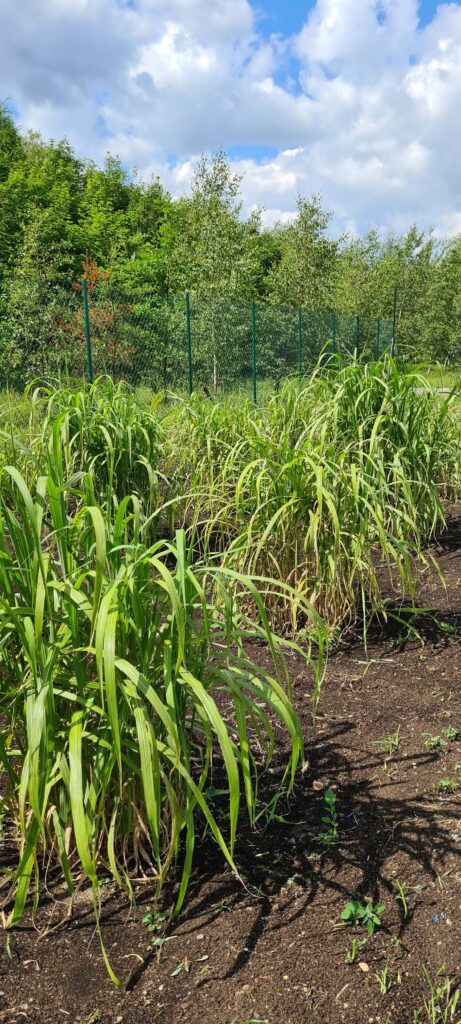W Zakładzie Utylizacyjnym miskant pojawił się w maju 2021 roku. Rośnie zarówno na poletku doświadczalnym, podzielonym na cztery obszary, jak i w szklarniach, gdzie miskant uprawiany jest w warunkach modelowych. Obecnie na terenie zakładu posiadamy 128 miskantów, w tym 49 w szklarniach i 79 na poletku.