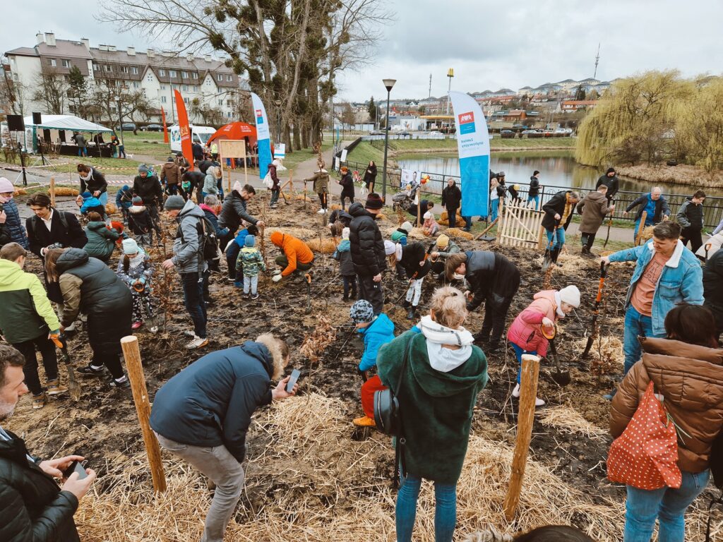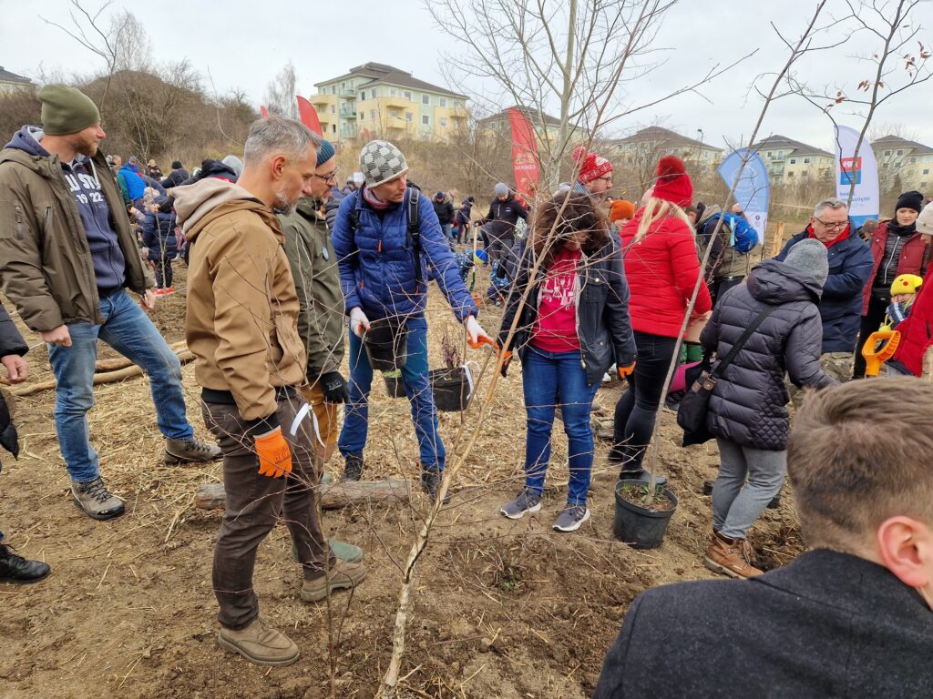 Sadzenie czwartego Miejskiego Mikrolasu przy zbiorniku Platynowa, marzec 2024